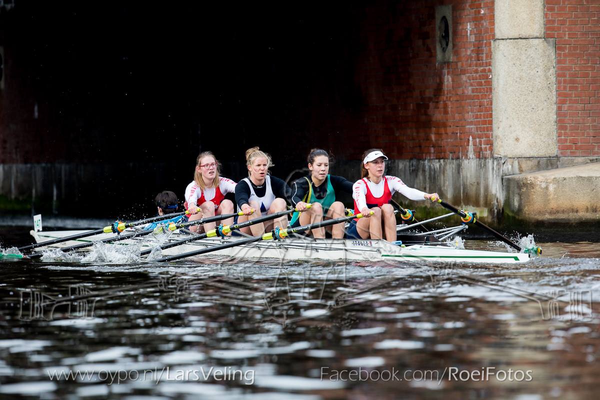 Het stuurtje van de dames stuurde de quadruppel strak door de race, waardoor ze een mooie 5e plaats haalden. Omdat de dames naar hun eerste toffe sprint nog niet genoeg van de derde plek hadden, gingen ze bij de tweede afstand, 750 m, keihard knallen en zijn ze weer als derde over de finish gevlogen. Bij de laatste sprint had de burgervereniging Willem III een olympische roeier aan boord, zonder dispensatie aan te vragen, waardoor ze van de wedstrijd worden uitgesloten.