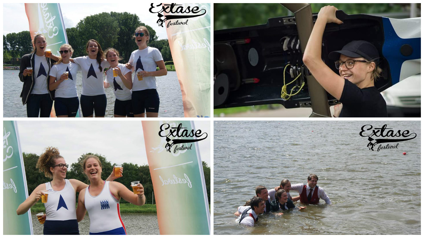 De mannen uit de Heren B4+ moesten namelijk 10 minuten na de dames starten en konden met drie inschrijvingen gelijk de A-finale varen. Cristian van Eeden (slag), Mischa Huisman (3), Alex Paauw (2), Christian van der Wal (boeg) met stuurvrouw Jasmijn Tiemersma hadden van tevoren een plan bedacht en dat was na de start net op voorsprong blijven op de rest van het veld. Dit plan viel al snel in duigen, want de ploegen van Gyas en Amphitrite bleken beiden erg sterk. Bij de start lagen onze ‘ongetrainde’ mannen nog wel voor, maar Gyas nam toen de leiding over en bleef tot de 1500 meter de leider van het veld. Vanaf 1800 meter werden de mannen keihard aangemoedigd door de supporters op de kant. Jasmijn Tiemersma heeft de longen uit haar lijf geschreeuwd en gaf op het einde aan dat als zij taartblik en bier wilden hebben, zij het nu moesten doen. Dit heeft geholpen! De mannen kwamen, met een kleine voorsprong op Gyas, als eerste over de finish! Bestuurslid Mischa Huisman kon zijn geluk niet op. [Drie keer is scheepsrecht]. Deze mannen mochten dus ook naar het erevlot varen. Binnen 10 minuten klonk ons verenigingslied opnieuw, dit is toch geweldig! Bier is altijd een goede drive voor bestuursleden 😉